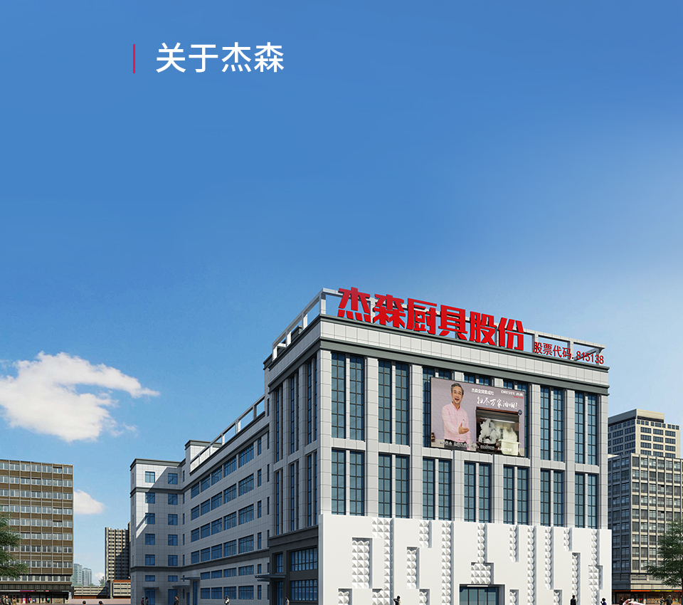 浙江杰森廚具股份有限公司成立于2000年,是一家集研發(fā)、生產(chǎn)、銷售于一體的現(xiàn)代化廚電企業(yè)。座落于中國(guó)——嵊州,公司四大產(chǎn)業(yè)鏈布局,現(xiàn)擁有總工廠及子工廠,占地面積約67000平方米,其中廚電產(chǎn)業(yè)區(qū)年產(chǎn)能高達(dá)40萬(wàn)臺(tái)。全國(guó)1000多家銷售網(wǎng)點(diǎn),遍布全國(guó)各省市自治區(qū)。